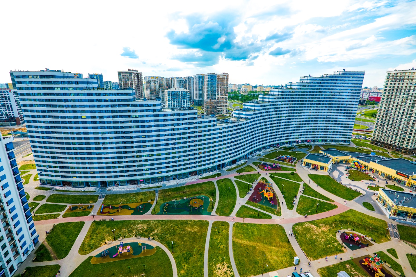 Кварталы комплекса образуют собой «город в городе», где есть всё необходимое для постоянного комфортабельного проживания и работы.